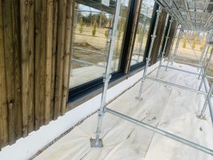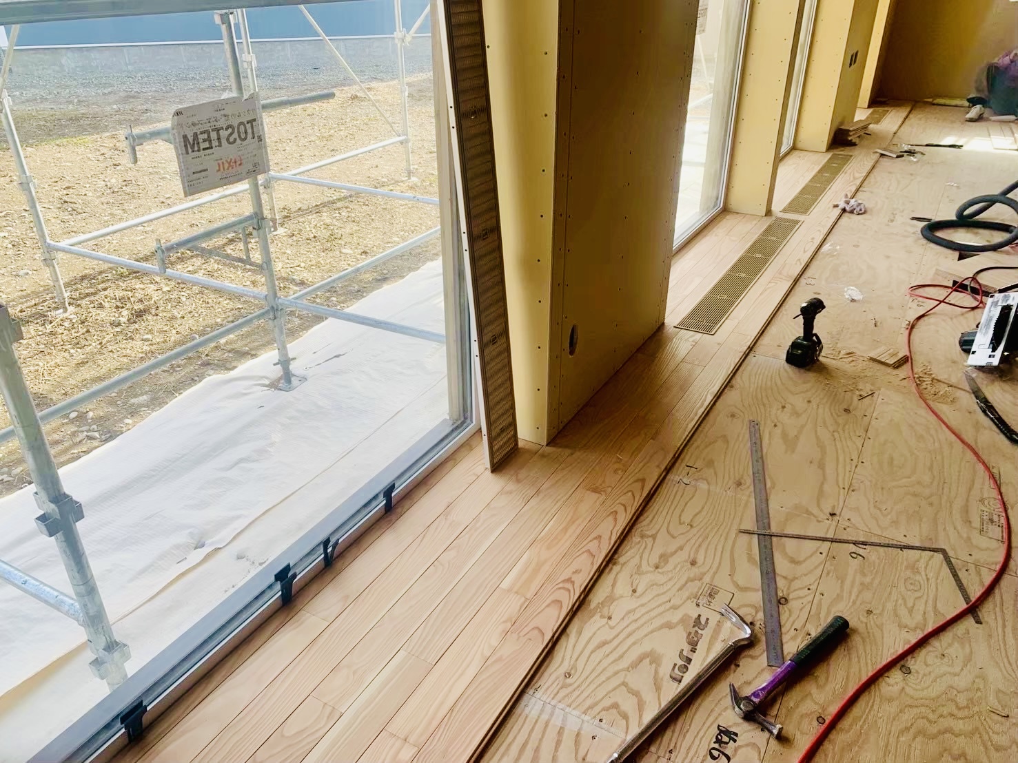 木工事:カラマツ床張り,養生