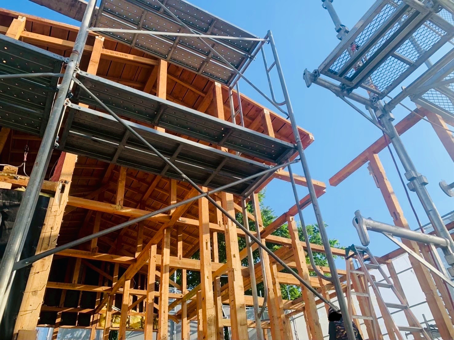木部構造復旧:外周_柱頭脚金物,既存GW,通気止め,セルボード,発泡ウレタン補修,壁OSB合板