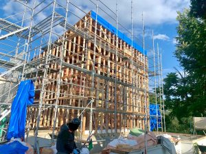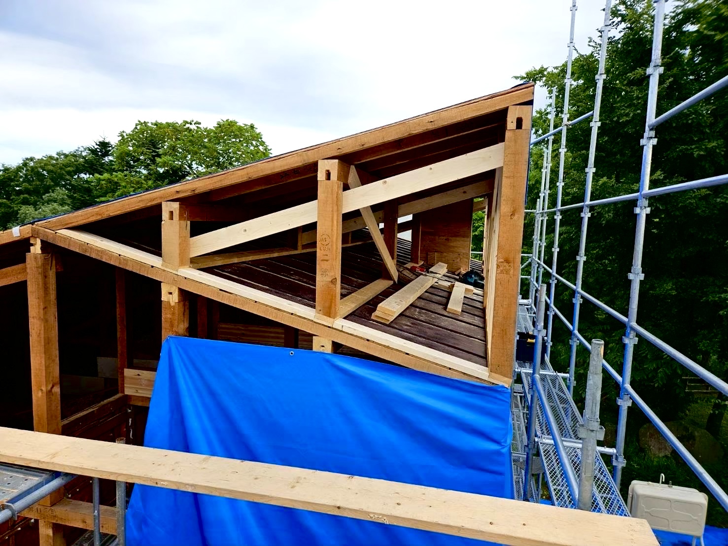 木部構造復旧:外周_柱頭脚金物,既存GW,通気止め,セルボード,発泡ウレタン補修,壁OSB合板