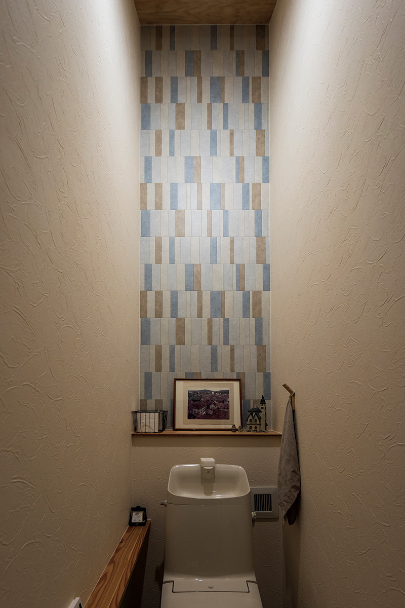 2階寝室横にもアクセントウォールや造作腰壁カウンターを採用したトイレを設置